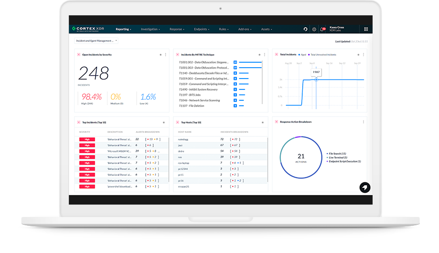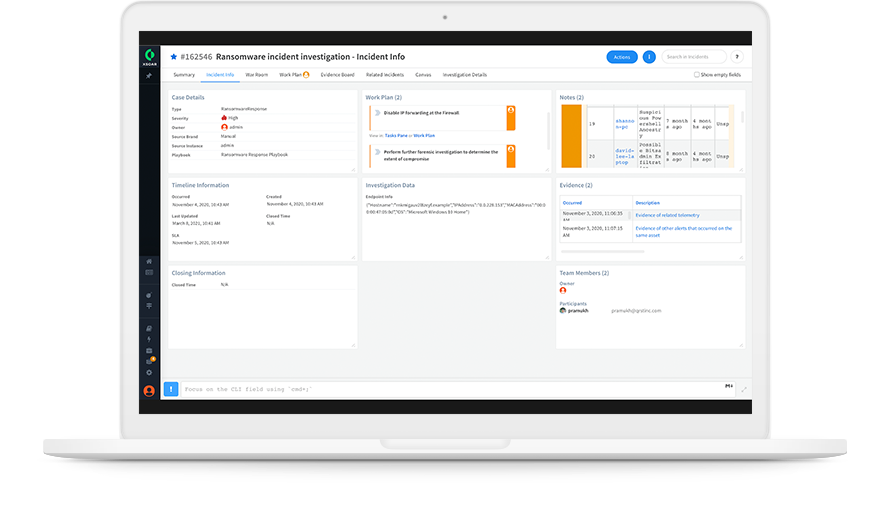 Cuando atacan los atacantes, los equipos de seguridad deben actuar con rapidez y eficacia. Los manuales de estrategias automatizados garantizan que se tomen medidas de mitigación, ganando tiempo para coordinar una respuesta. Cuando es necesario, nuestros equipos de respuesta a incidentes se despliegan más rápido, buscan de manera más inteligente, investigan más a fondo y contienen por completo, para que pueda limitar sus daños y volver al negocio.